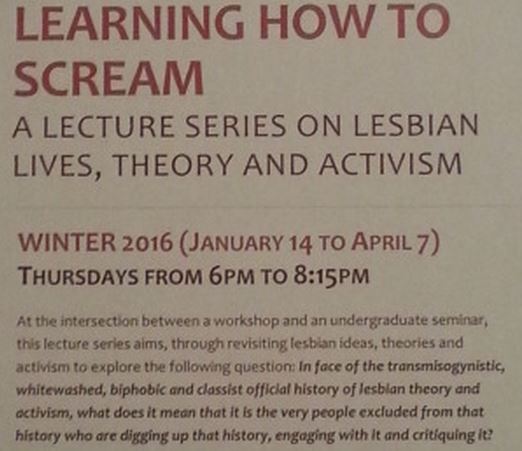 As part of this project, I will be facilitating a lecture series next semester on lesbian theory and activism.
