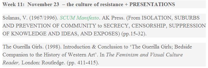 Yes, we must have “respect and civility”! No “name-calling” or “sarcasm” will be tolerated in this class where all men are portrayed as complicit in oppression, rape and “emotional terrorism”! We will permit no “negative exchanges” which might be “counter-productive” while we teach the “culture of resistance” by reading SCUM Manifesto by Valerie Solanas!