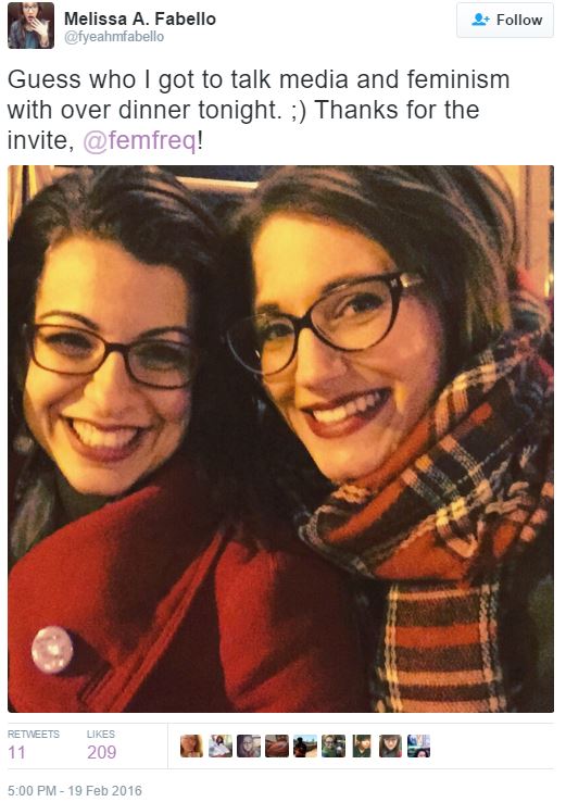 Melissa Fabello “got to talk media and feminism . . . over dinner” with Anita Sarkeesian on Feb. 19 — the same day Twitter shut down my account, and this could be just a coincidence. Sure, I’ve been mocking Ms. Fabello’s site Everyday Feminism here on a regular basis for months (e.g., “The Queering of Feminism” and “Your Heterosexual Feminism Is Wrong”), and sure, Anita Sarkeesian is buddy-buddy with Twitter “Trust and Safety” Commissar Del Harvey, but it would be ludicrous — perhaps even paranoid — to think that Melissa Fabello, Anita Sarkeesian and Del Harvey might all agree that my popular @rsmccain account should be “silenced, marginalized and excluded” from Twitter.