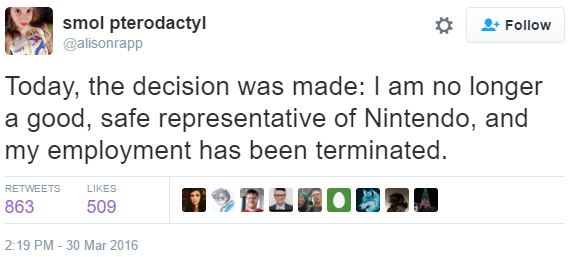 Nintendo Fires @AlisonRapp, Who Hates #GamerGate and Supports Pedophiles