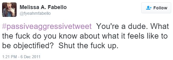 34 Responses to “Update: @fyeahmfabello Is Still Crazy (Beware of the Feminist™ Brand)”