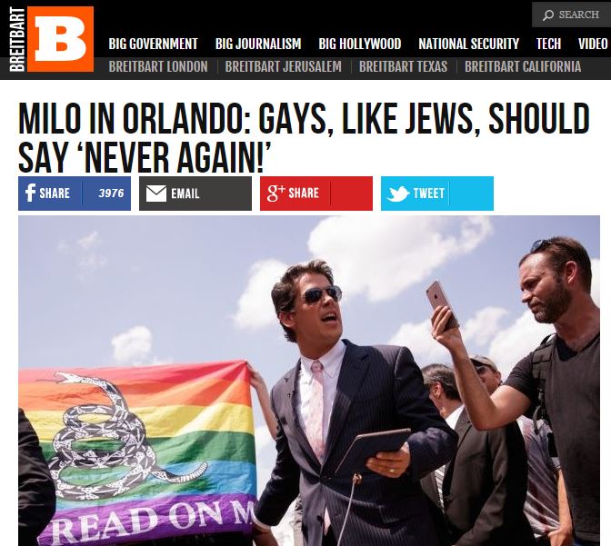 Milo in Orlando: Gays, Like Jews, Should Say 'Never Again!' https://t.co/cYDyykBw58