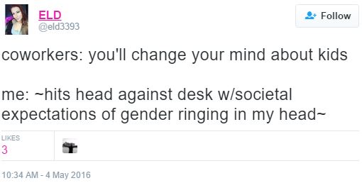 Translation: “Only women who lack self-esteem want husbands and families. Getting married and having children makes you toxic.”