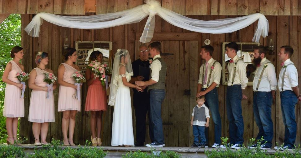 The ceremony — notice best man Jim with his son James, the ringbearer.