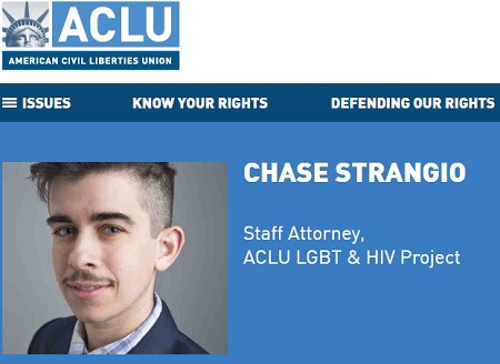 So I encountered “Chase Strangio,” the pseudo-male ACLU lawyer, playing the role of heroic martyr/victim in an emotional appeal to pity: