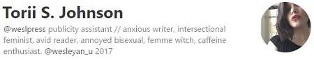- Researching further, I discovered that Ms. Dawson had been interviewed by a current Wesleyan University student enrolled in the Feminist, Gender, and Sexuality Studies program. Torii Johnson describes herself as an “intersectional feminist . . . bisexual, femme witch.”