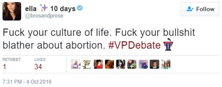 Yeah, “civil public discourse” — that’s what Ella Dawson is famous for.