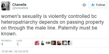 […] “Heteropatriarchy” as a Dye Marker: Feminism as Lesbian Supremacy If you are in a hurry, and don’t have time to read what I’m about to explain, do yourself a favor: Go to Twitter and search for the word “heteropatriarchy.” […]