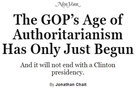 Donald Trump is an authoritarian — the next Hitler — according to liberals like Jonathan Chait. Therefore, if Trump is inaugurated as president next January, it will be only a matter of time because liberal journalists are rounded up, loaded onto railroad cattle-cars, and shipped to death camps in Idaho. Jonathan Chait considers this an argument for voting against Donald Trump. But some might see it the other way.