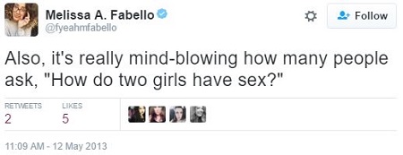 Melissa Fabello is an expert on lesbian sex — also bisexuality, “homoflexible” and “queer.” The one thing she’s absolutely against is “straight,” because that is a “charade.” It’s 2016 and nobody is heterosexual anymore, so we can just move along to Melissa Fabello’s next point, which is that you heterosexual dinosaurs — “breeders” — obviously don’t know anything about sexuality, and therefore you need professional queers like Melissa Fabello to explain it to your kids.