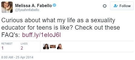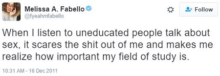 When she’s not busy spreading hate and sexually-transmitted diseases, Melissa Fabello likes to talk, talk, talk about sex, sex, sex.