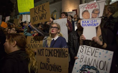 Clinton communications director Jennifer Palmieri condemned Bannon, who previously ran Breitbart, a news site popular with the alt-right, a small movement known for espousing racist views.