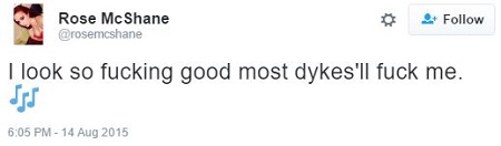 Boasting of her ability to attract “dykes,” and publicly emphasizing her dedication to her identity, Ms. McShane posed for Twitter selfies wearing a necklace with a lesbian symbol.
