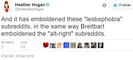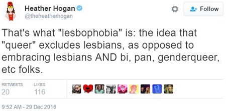 Posted on | December 30, 2016 | Comments Off on Did Queer Feminist @TheHeatherHogan Just Compare Lesbians to the ‘Alt-Right’?