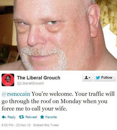 Google “deranged cyberstalker” and Bill Schmalfeldt‘s name comes up for some reason, perhaps because in November 2012, the neckless lunatic decided that it would be a clever idea to target my wife for harassment.
