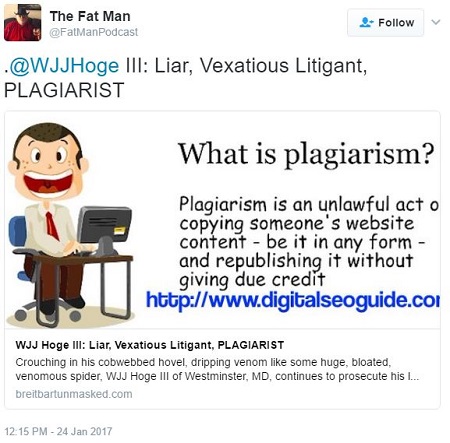 Because there are many other more interesting stories my readers care about, I’ve more or less ignored the otherwise obscure Schmalfeldt the past couple of years. Probably the last time I mentioned him was in October (“Deranged Cyberstalker Bill Schmalfeldt Is Still Deranged and, Yes, Cyberstalking”) when the fat fool recycled a particularly wretched falsehood. However, we must ask, what does it say about Bill Schmalfeldt that he has continued his obsessive attacks against John Hoge?