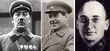 Genrikh Yagoda (left), Nikolai Yezhov (center) and Lavrenti Beria (right).