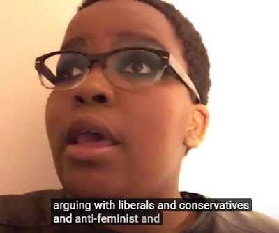 The quote in the headline is from a video she posted last month (“Scattered Thoughts About Anti Feminists And Anti SJWS”) which appears to have been recorded on the bottom bunk of bunkbeds.
