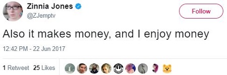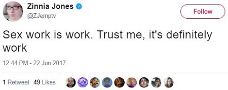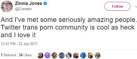 Using the phrase “sex work” to describe his/“her” activity as an online exhibitionist, Zachary/“Zinnia”/“Satana” seeks to normalize what is inarguably abnormal behavior. If publicly degrading yourself for the onanistic pleasure of an audience of perverts is a “neat job,” and if those engaged in this activity are “seriously amazing people,” then anyone who criticizes the “trans porn community” is just a hateful bigot — such is the implied argument of Zachary/“Zinnia”/“Satana.”
