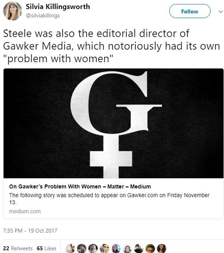 Of course, the saga of Steele’s self-destruction isn’t being told as a cautionary tale about the catastrophic consequences of alcoholism. Rather, it’s about “male power” and the “floodgates of assault and harassment survivors speaking out against their attackers.”