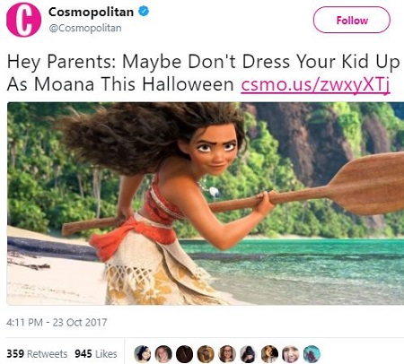 Feminists have spent the past half-century advocating abortion and homosexuality, while condemning marriage and motherhood, yet these enemies of the family now presume to tell parents how to raise children. Having taken over the women’s magazines, these left-wing fanatics now use them as platforms for lectures on “intersectional” themes, e.g., proclaiming that it’s racist “cultural appropriation” for any white child to wear a costume inspired by Moana. This social justice warrior (SJW) mentality, which is always on the hunt for “microaggressions” and “privilege,” is a guaranteed formula for insanity. The Left has taken over women’s magazines, and Iowahawk explains what that means.