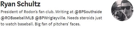 Schultz began contributing to Baseball Prospectus’s local White Sox blog at the end of the 2016 season and wrote for BP South Side and BP Wrigleyville throughout the 2017 season. Additionally, Schultz wrote for the SB Nation sabermetrics site Beyond the Box Score throughout 2017.