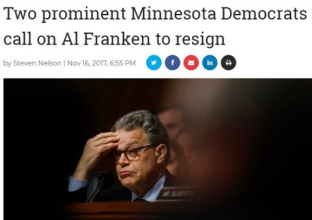 Democrats are now calling for Al Franken to resign from the Senate because he’s been caught acting like a Democrat: