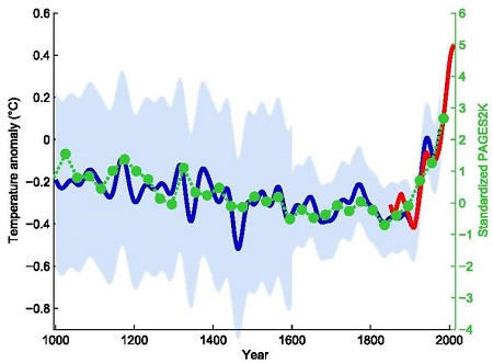 Consider the case of “climate change.” Having spent vast sums to orchestrate an effort to put all the prestige of Science with a capital “S” behind the theory of anthropogenic global warming (AGW), the Anointed then set out to silence all criticism of this theory. One of the results was a lawsuit filed by Penn State professor Michael Mann against columnist Mark Steyn. Mann was principal author of the so-called “hockey stick” graph which purported to show that global temperatures had dramatically increased, and which was used to promote a Chicken Little sky-is-falling “emergency” attitude about carbon emissions.