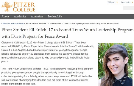 Perhaps readers will not be surprised to learn that one of the TSER projects that Erlick and Diamond worked on together was a “Model Admissions Policy on Transgender Students at Women’s Colleges.”