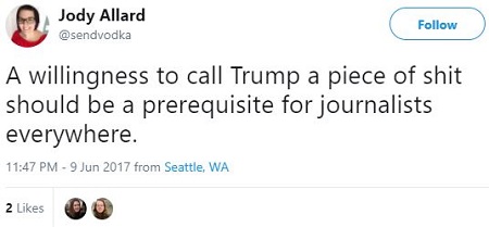 Readers may recall Jody Allard, the left-wing Seattle woman who became notorious in September 2016 when she published a Washington Post column about “rape culture” that targeted her own teenage sons. Allard calls herself a feminist and, of course, she demonizes Donald Trump.