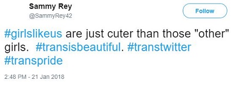 When confronted on Tumblr, “Sammy”/Steven responded: “F– your dead grandma,” and declared: “I owe little anti trans bitches no explanation or apologies. F–k off and die.” He/“she” then changed his/“her” profile to a slogan against “TERFs” (trans exclusive radical feminists).