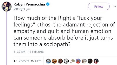 Robyn Pennacchia is a hate-monger who should be ashamed of herself, but if she had any sense of shame, she wouldn’t be a feminist, would she?