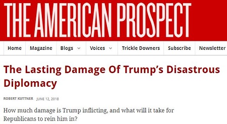 No matter how much President Trump succeeds, the Left simply will not acknowledge his success. The headline on Robert Kuttner’s American Prospect column — asserting that Trump is inflicting “damage” by his “disastrous diplomacy” with North Korea — shows how the Left is committed to denying any recognition of Trump’s success.