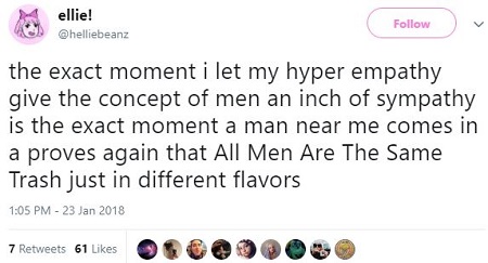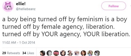 Perhaps not every young feminist has pink hair and three different psychiatric diagnoses, but on Tumblr? Yeah, that’s what feminism is. You should keep your daughter far away from it, or one day your daughter will declare she’s “nonbinary,” and then maybe she’ll be transgender, and on and on until she’s nothing but a sad joke of toxic craziness.