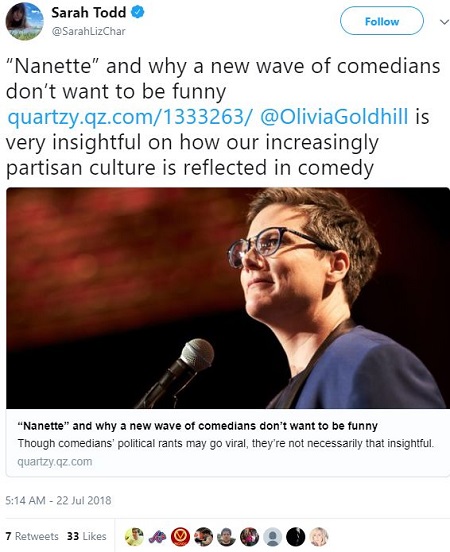 Social justice is not funny and Twitchy has taken note of a rather weird article featuring a rather weird comedian: