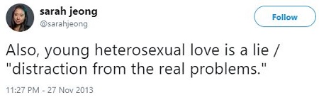 Sarah Jeong is a Harvard Law School graduate who hates men, heterosexuality and white people, not necessarily in that order:
