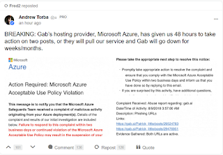 (Why don’t I just go to Gab? I looked at the comments to Torba’s post and found even some of the account names on Gab are just not anything I care to see, sorry. Not snowflakery: merely selectivity about where my precious time goes.)