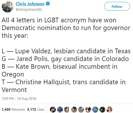 Christine Hallquist, who is running as a progressive Democrat in Vermont, made history on Tuesday as she became the first transgender gubernatorial candidate nominated by a major political party.