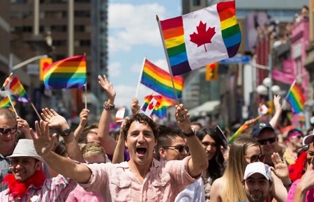 Prime Minister Justin Trudeau celebrates with typical Canadians.