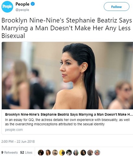 Brooklyn Nine-Nine star Stephanie Beatriz, who plays Rosa Diaz on the show, says she’s “still bi”, even if she’s marrying a man.