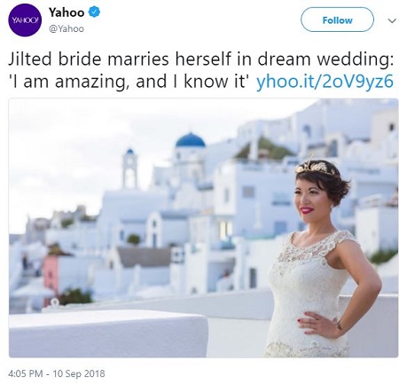 Oh, you shouldn’t be judgmental, they tell us. We are expected to ignore our own common sense and instead sit silently while all these advocates of Scientific Progress and Social Justice — acolytes of The Vision of the Anointed — tell us what opinions are permissible. The liberal media tell this tale about Laëtitia Nguyen in such a way as to persuade fools that she really is “amazing” and her solo wedding is empowering.
