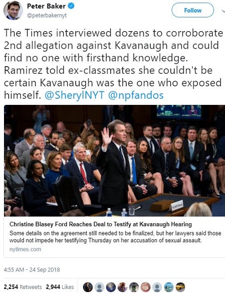 The most important fact about the Deborah Ramirez story in the New Yorker is that the same story was rejected by the New York Times, which spent a week chasing the story, interviewing dozens of Brett Kavanaugh’s Yale classmates, but was unable to verify Ramirez’s story. Perhaps more disturbing is that Jane Meyer, who co-wrote the New Yorker story with Ronan Farrow, told CBS that their reporting involved “an email chain of Yale classmates of Kavanaugh” discussing this claim.