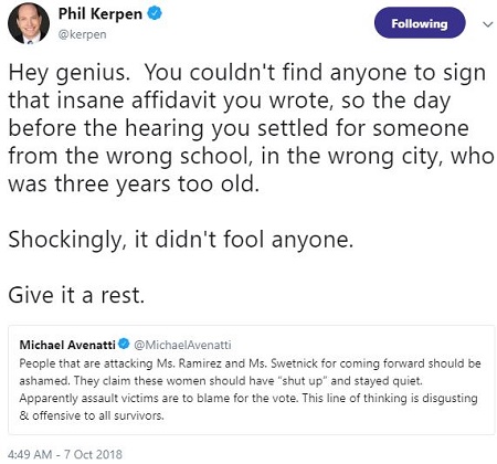 Avenatti, who represents porn star Stormy Daniels, entered the Kavanaugh foray as an attorney for Julie Swetnick, a Washington, D.C. woman who claimed that Kavanaugh was present at house parties in the early 1980s were girls were gang raped.