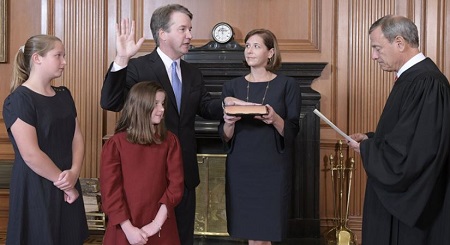 Brett Kavanaugh is sworn in by Chief Justice Roberts.