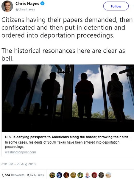 Sieff constructed a textbook example of fraudulent “reporting.” For example, he treats as authoritative the claims of two immigration lawyers in Texas, one of whom says that cases of denied passports are “skyrocketing,” and another who asserts that he is aware of “probably 20 people” who are U.S. citizens that have been sent to “detention centers” by the Trump administration. These anecdotal claims were accepted as fact by Sieff, who nevertheless was unable to identify even one such case by name, so it is impossible to verify if any such cases actually exist.