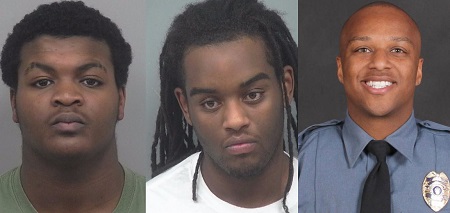 Left to right: Tafahree Maynard and Isaiah Pretlow; Officer Antwan Toney.