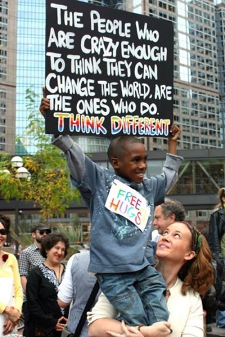 Devonte Hart with his ‘Free Hugs’ sign at a 2012 Bernie Sanders rally.