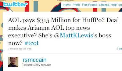 Professor Reynolds mockingly says the ridiculous price paid for HuffPo “means that InstaPundit’s valuation just skyrocketed,” when of course it means no such thing. Because this deal makes no sense as a business proposition, it cannot be weighed in as a factor for calculating the value of any other Internet property.