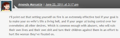 As one blogger observed: “It’s pure feminist evil. . . . A man whose life was destroyed by anti-family courts burns himself to death, but Marcotte thinks a woman is the hardest hit.”