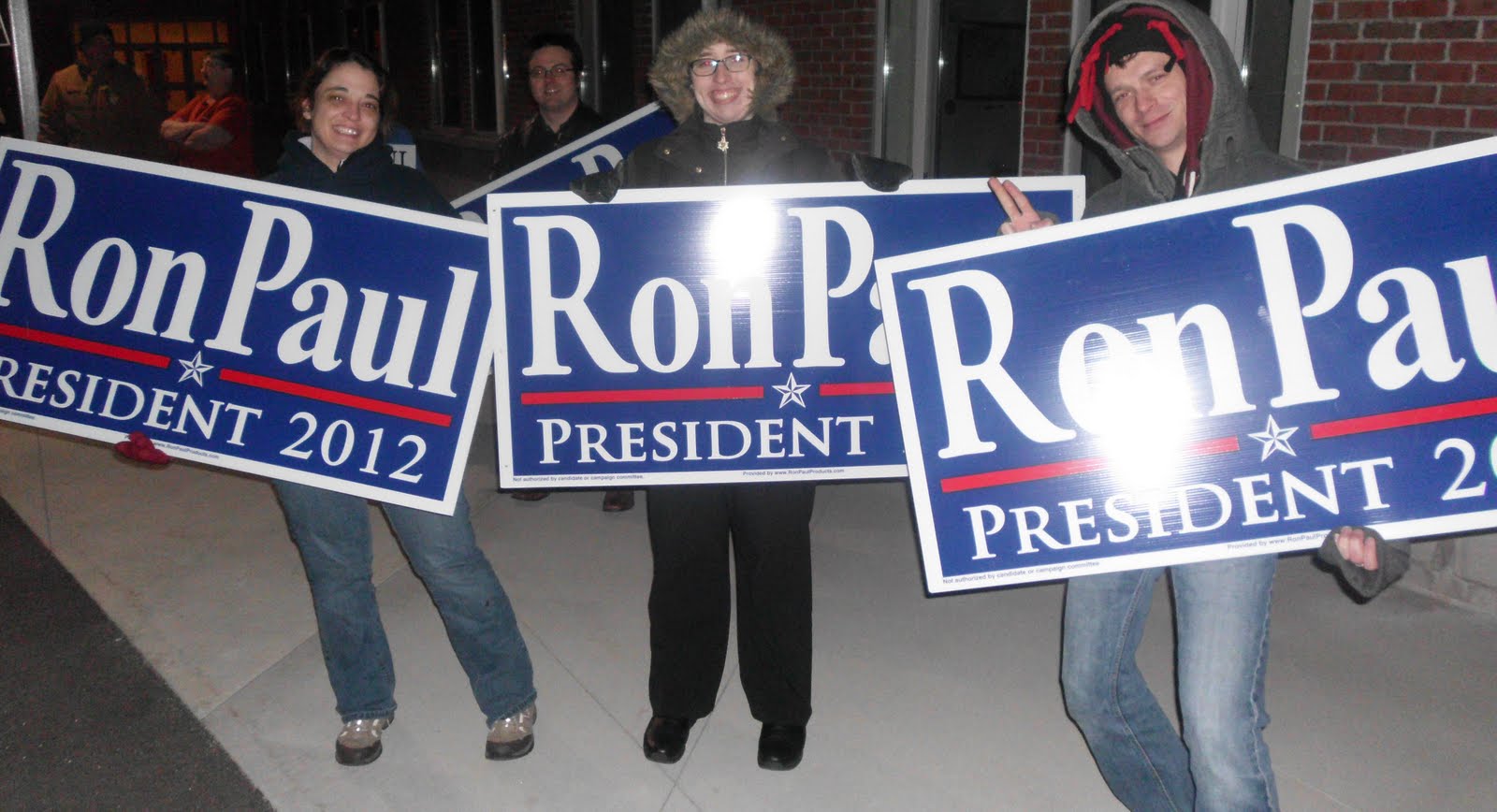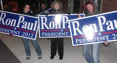 There will be a Ron Paul press conference in about 10 minutes. Here’s a photo of Paul’s fans doing their thing outside last night’s Rick Santorum event in Windham.